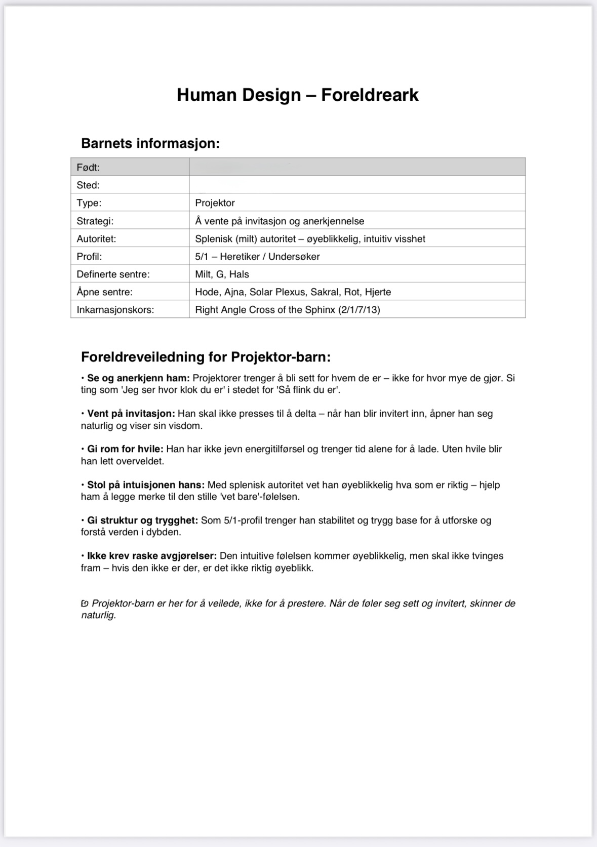HUMAN DESIGN FOR FORELDRE