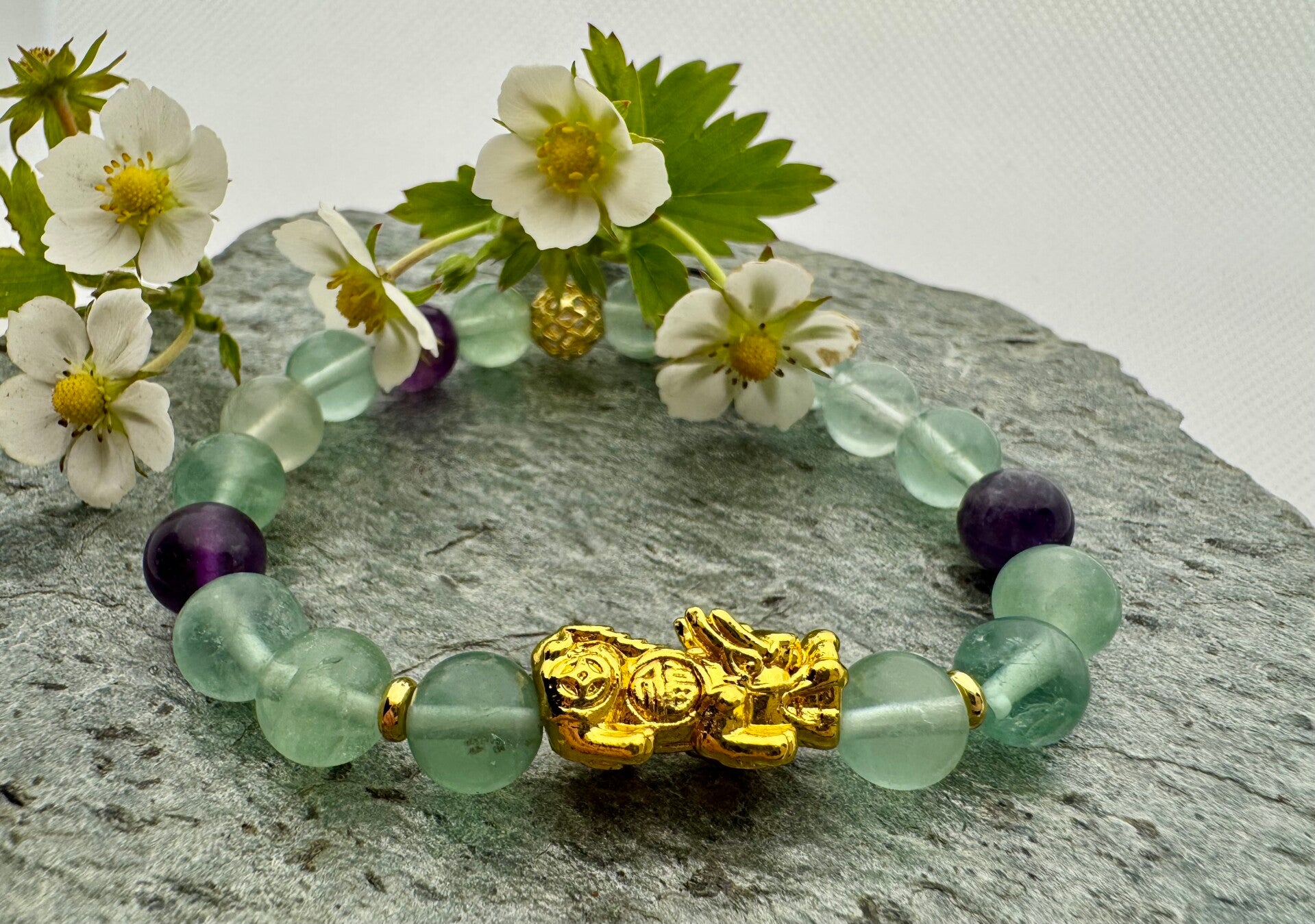 Pixui Lykkearmbånd med medium Pixui og Regnbue fluoritt