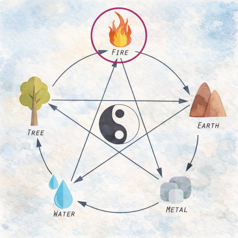Feng Shui bruker fem elementer – tre, ild, jord, metall og vann – som påvirker ulike områder av livet. Disse kan uttrykkes gjennom farger, former og materialer.